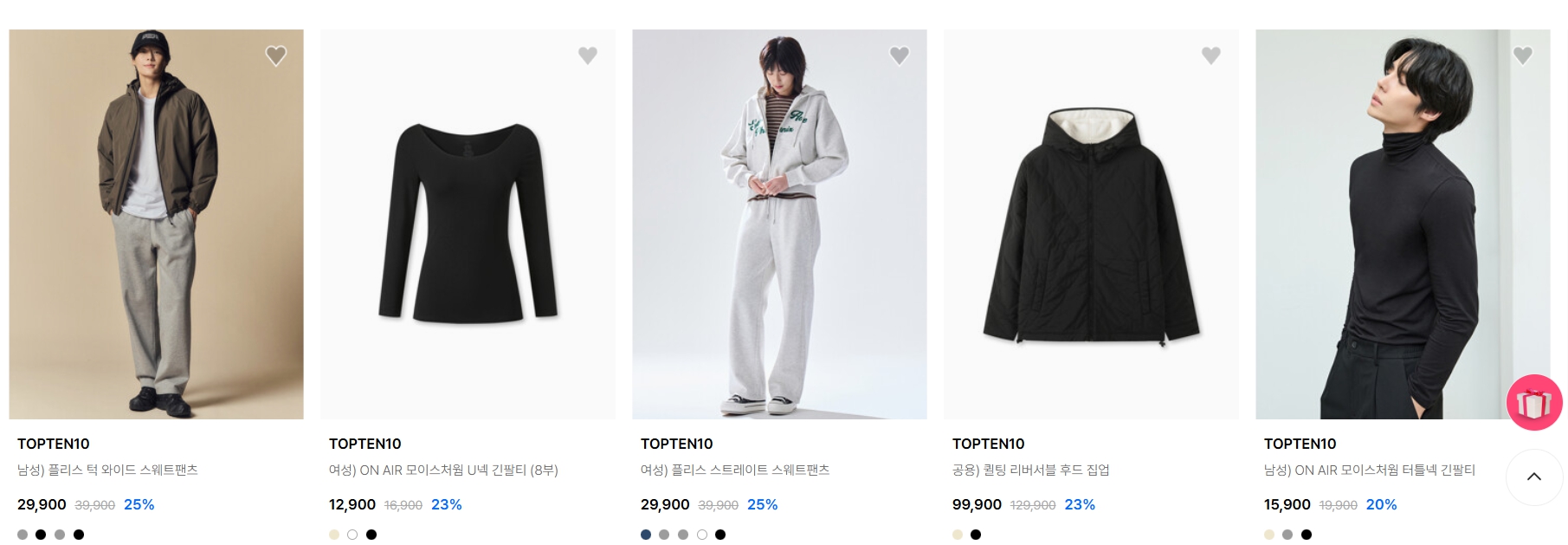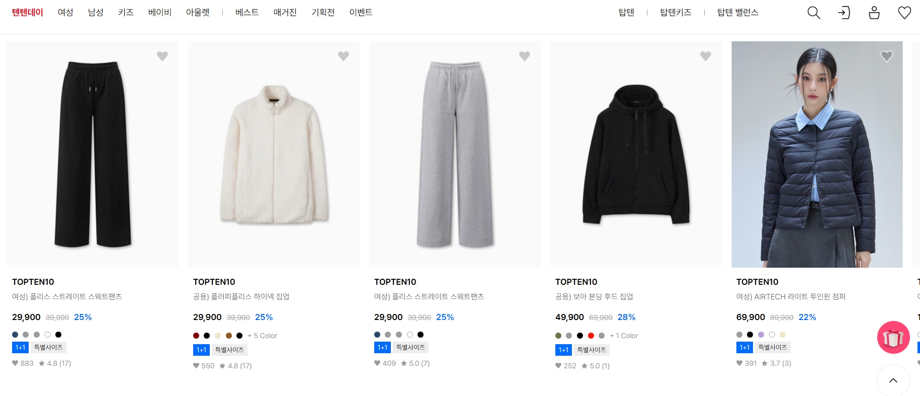 행사 기간에는 남성·여성 기본 의류뿐 아니라 키즈라인과 액세서리까지 일부 품목이 포함됩니다. 탑텐 공식몰에서도 동일한 혜택을 제공합니다.